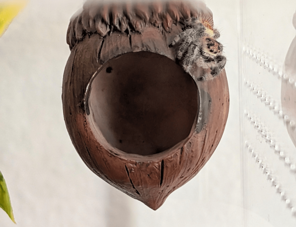 She “waves” to me and wiggles her cute, tiny pedipalps. To be frank I never would have guessed I’d want a spider for a pet. But the first time I saw a video of a jumping spider tilting its head when its owner spoke to it, I fell in love. It’s so fun to watch her catch her prey and spin her hammocks.